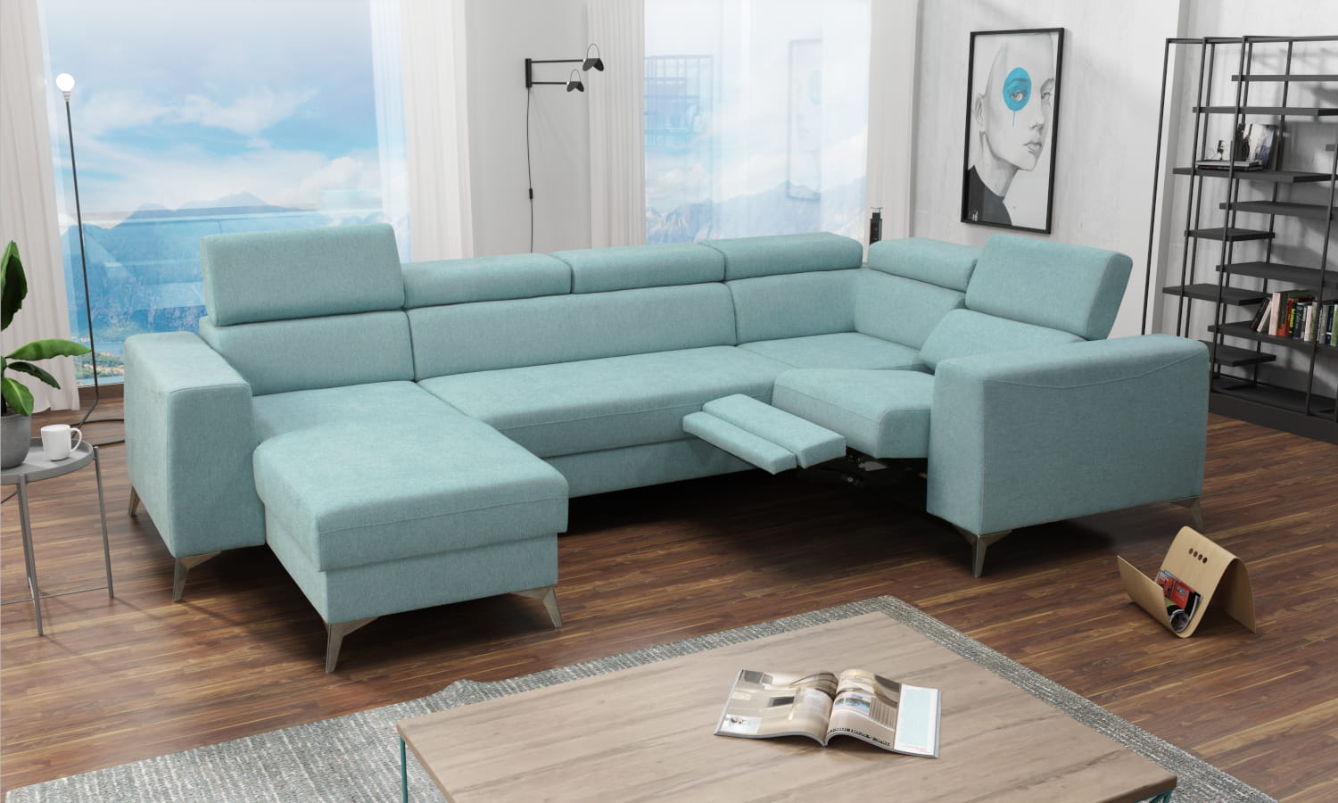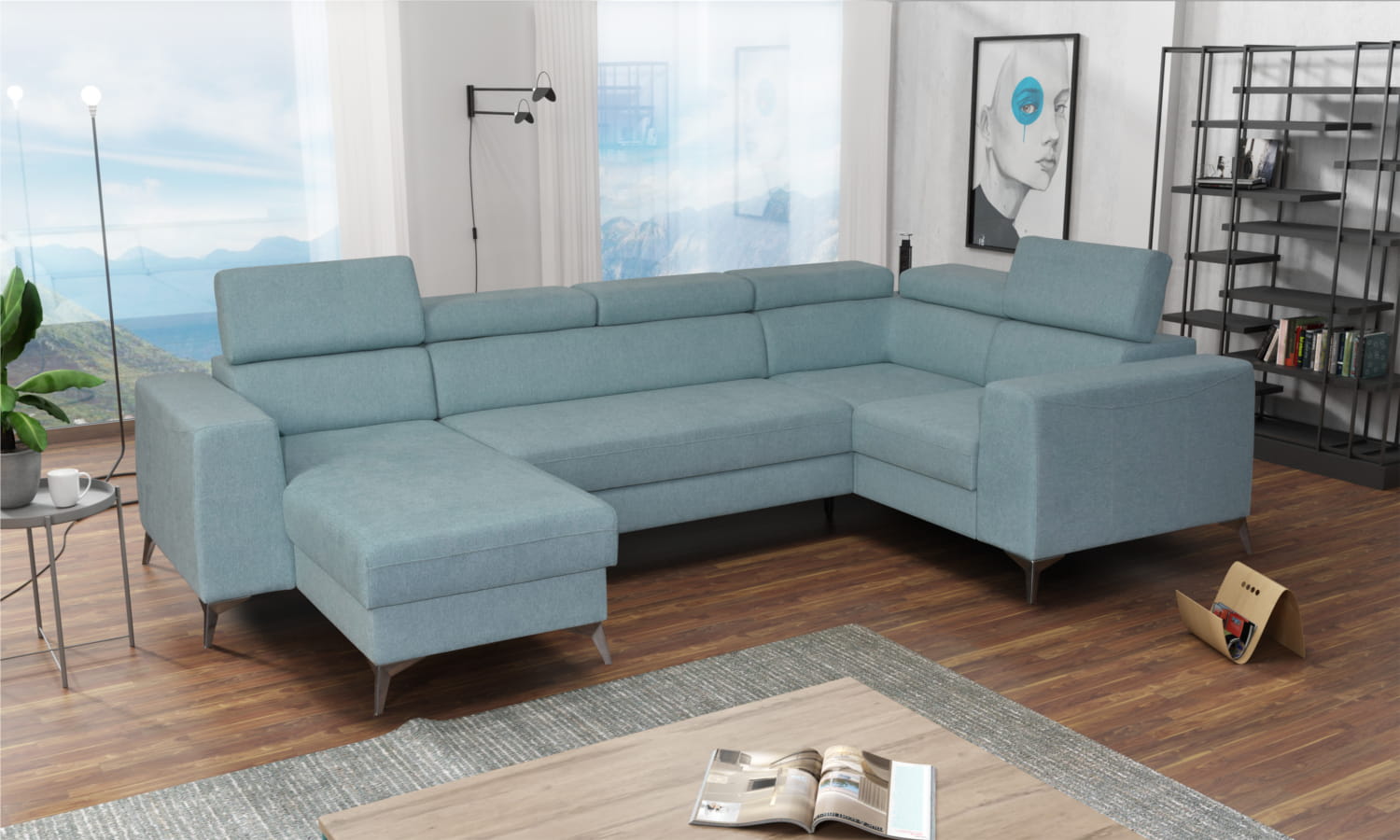 Narożnik OH Heron K2 na wysokich nogach z funkcją spania i zagłówkami