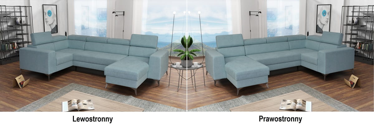 Stronę użytkowania określa bardziej wysunięty element narożnika, patrząc na mebel od frontu.
