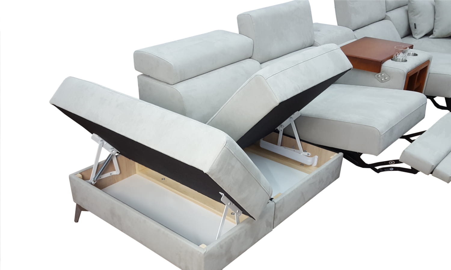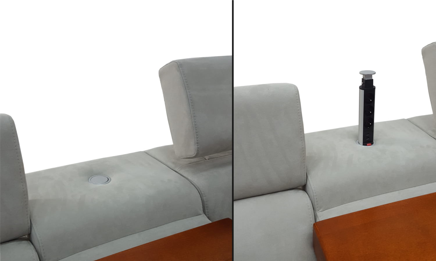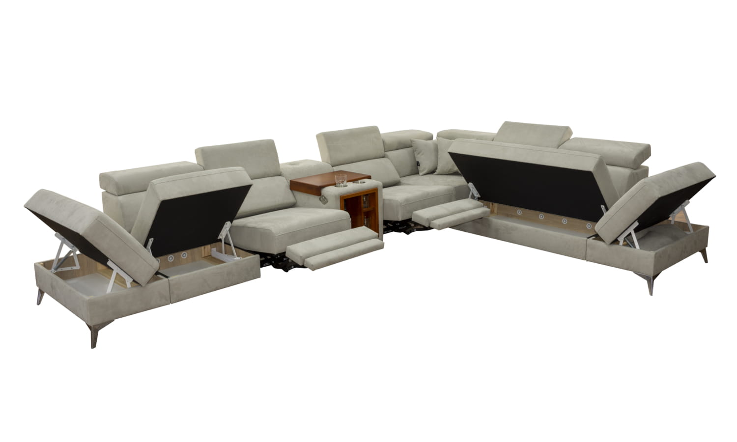OH Heron M26 wyposażony jest w elektryczną funkcję relax siedziska, barek, regulowane zagłówki oraz pojemniki na pościel. Dzięki temu model dobrze sprawdza się jako wygodny narożnik do codziennego odpoczynku i praktyczny mebel do nowoczesnego wnętrza. To dobra propozycja dla osób, które chcą połączyć wygodę, estetykę i funkcjonalność w jednym modelu.