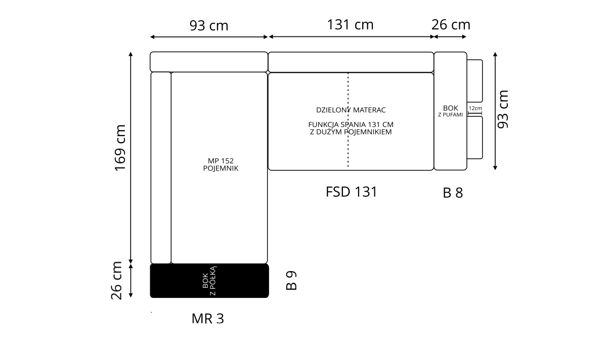 Ważną cechą tego produktu są pojemniki na pościel, które są bardzo pojemne a ich otwieranie ułatwiają zamontowane w nich mechanizmy sprężynowe.