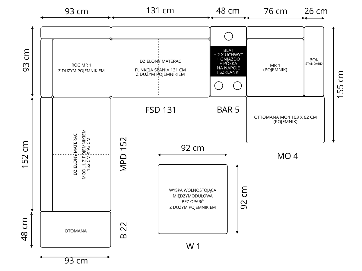 Narożnik OH Magnifico M11 z funkcją spania i pojemnikami na pościel