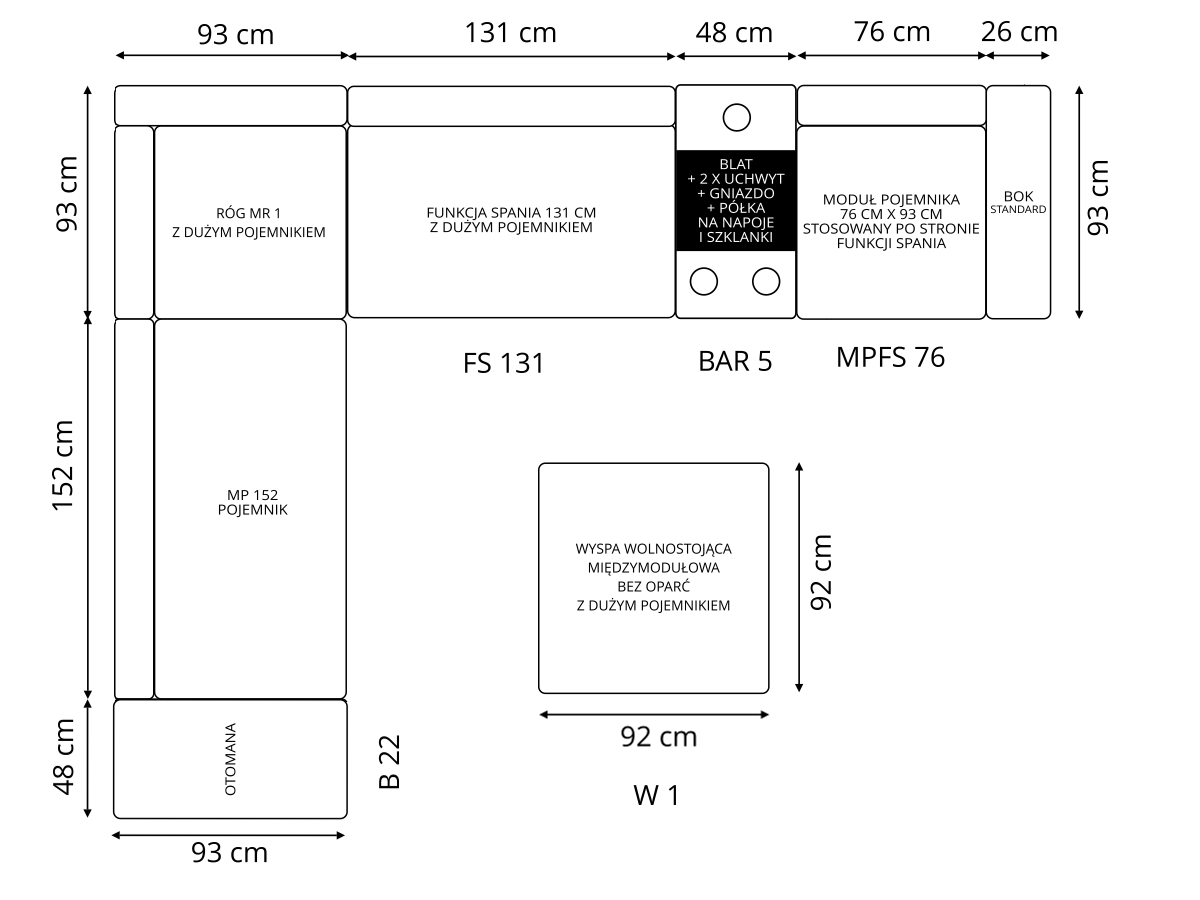Narożnik OH Magnifico M19 z funkcją spania i pojemnikami na pościel