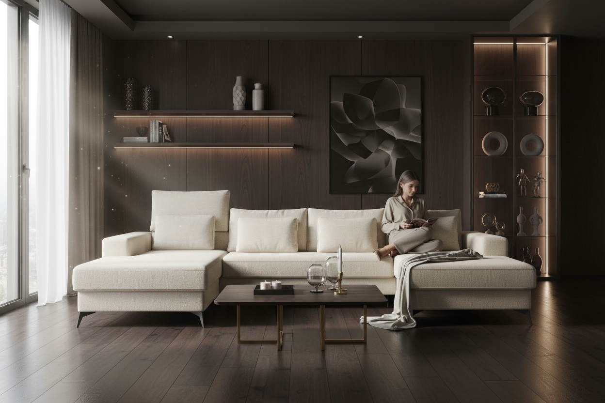 Model można dopasować pod względem tkaniny, koloru, układu oraz wybranych dodatków. Dzięki temu narożnik lepiej wpisuje się w charakter wnętrza i indywidualne potrzeby użytkowników. Wybierz tkaninę, dopasuj konfigurację i stwórz narożnik, który najlepiej sprawdzi się w Twoim wnętrzu.