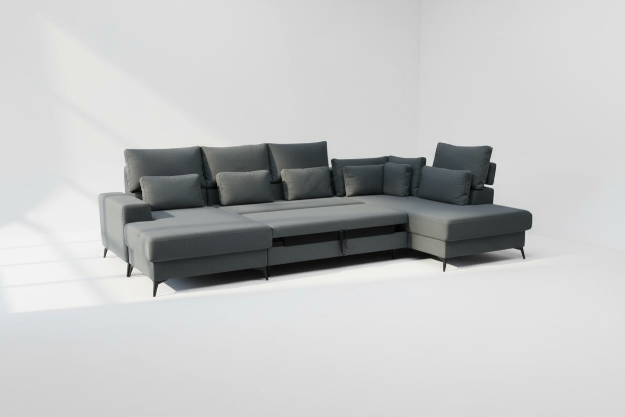 Narożnik OH Odin K1 to komfortowy model premium, który łączy elegancki wygląd, funkcjonalność oraz wyjątkową wygodę codziennego użytkowania. To propozycja dla osób, które cenią miękkie poduchy, możliwość dopasowania pozycji siedzenia oraz praktyczne rozwiązania przydatne w salonie. Model wyróżnia się wysokimi nogami, funkcją spania, pojemnikiem na pościel oraz regulowanymi zagłówkami. Dzięki swojej formie dobrze sprawdzi się zarówno w nowoczesnych, jak i bardziej klasycznych wnętrzach.