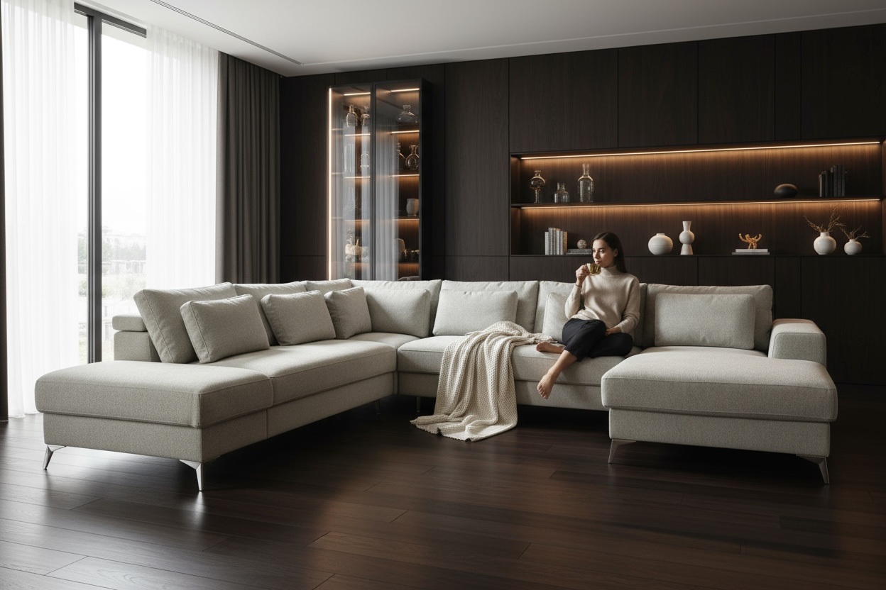 Narożnik OH Odin K2 to komfortowy model premium, który łączy elegancki wygląd, funkcjonalność oraz wyjątkową wygodę codziennego użytkowania. To propozycja dla osób, które cenią miękkie poduchy, możliwość dopasowania pozycji siedzenia oraz praktyczne rozwiązania przydatne w salonie. Model wyróżnia się wysokimi nogami, funkcją spania, pojemnikiem na pościel oraz regulowanymi zagłówkami. Dzięki swojej formie dobrze sprawdzi się zarówno w nowoczesnych, jak i bardziej klasycznych wnętrzach. OH Odin K2 został zaprojektowany z myślą o codziennym odpoczynku, ale jednocześnie zachowuje estetyczny, lekki i nowoczesny wygląd.