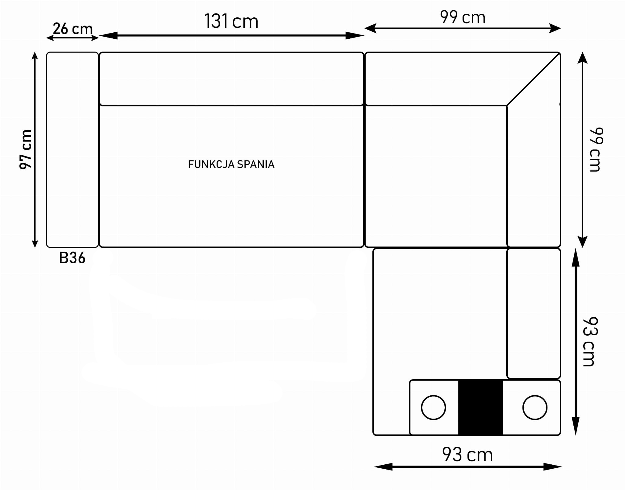 W standardzie narożnik wyposażony jest w regulowane zagłówki, pojemnik na pościel, a co najważniejsze narożnik posiada funkcję spania o sporych wymiarach. Dodatkowym plusem systemu OH Phoenix jest możliwość doposażenia swojego mebla w funkcjonalne dodatki typu rozkładany blat pod laptopa, bok z pufami, system audio, półki w bokach, ładowarki indukcyjne, podświetlane LED w pojemnikach na pościel itp.