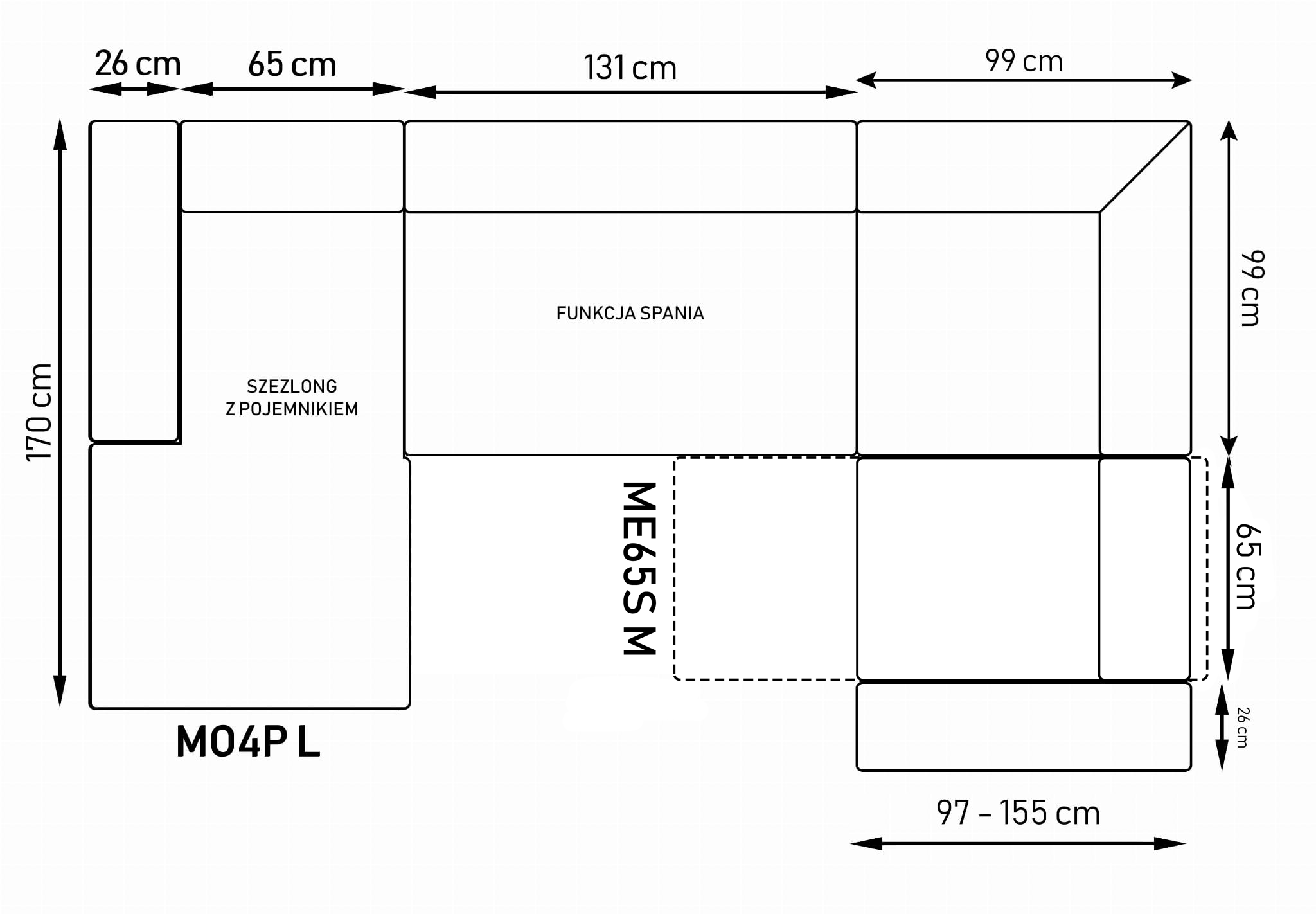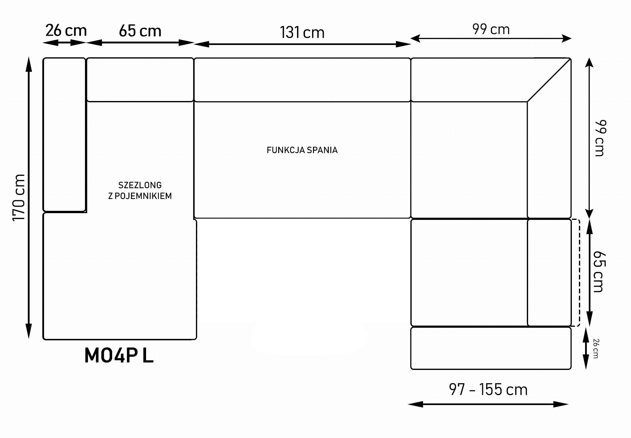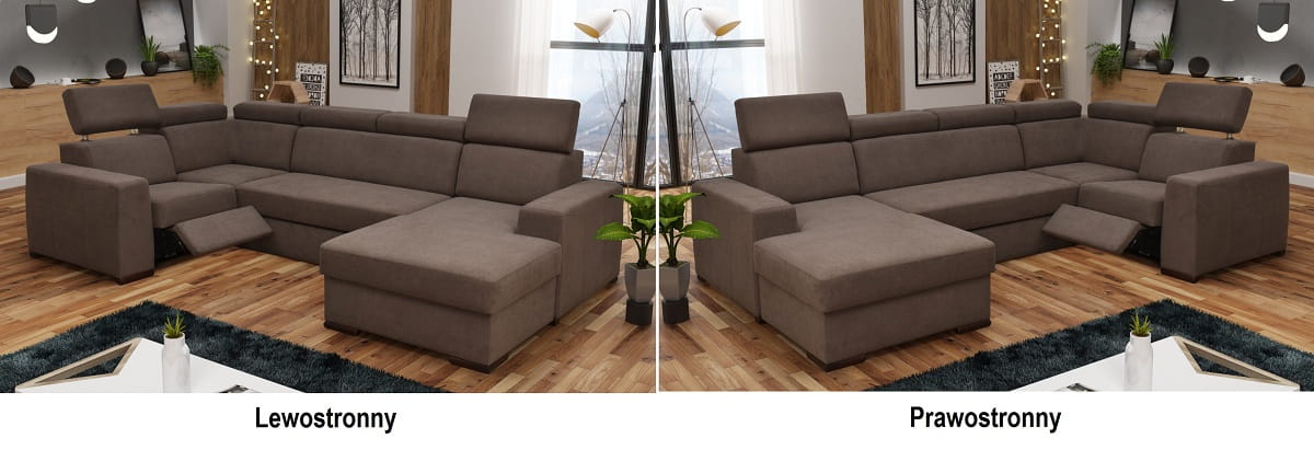 Stronę użytkowania określa bardziej wysunięty element narożnika, patrząc na mebel od frontu.
