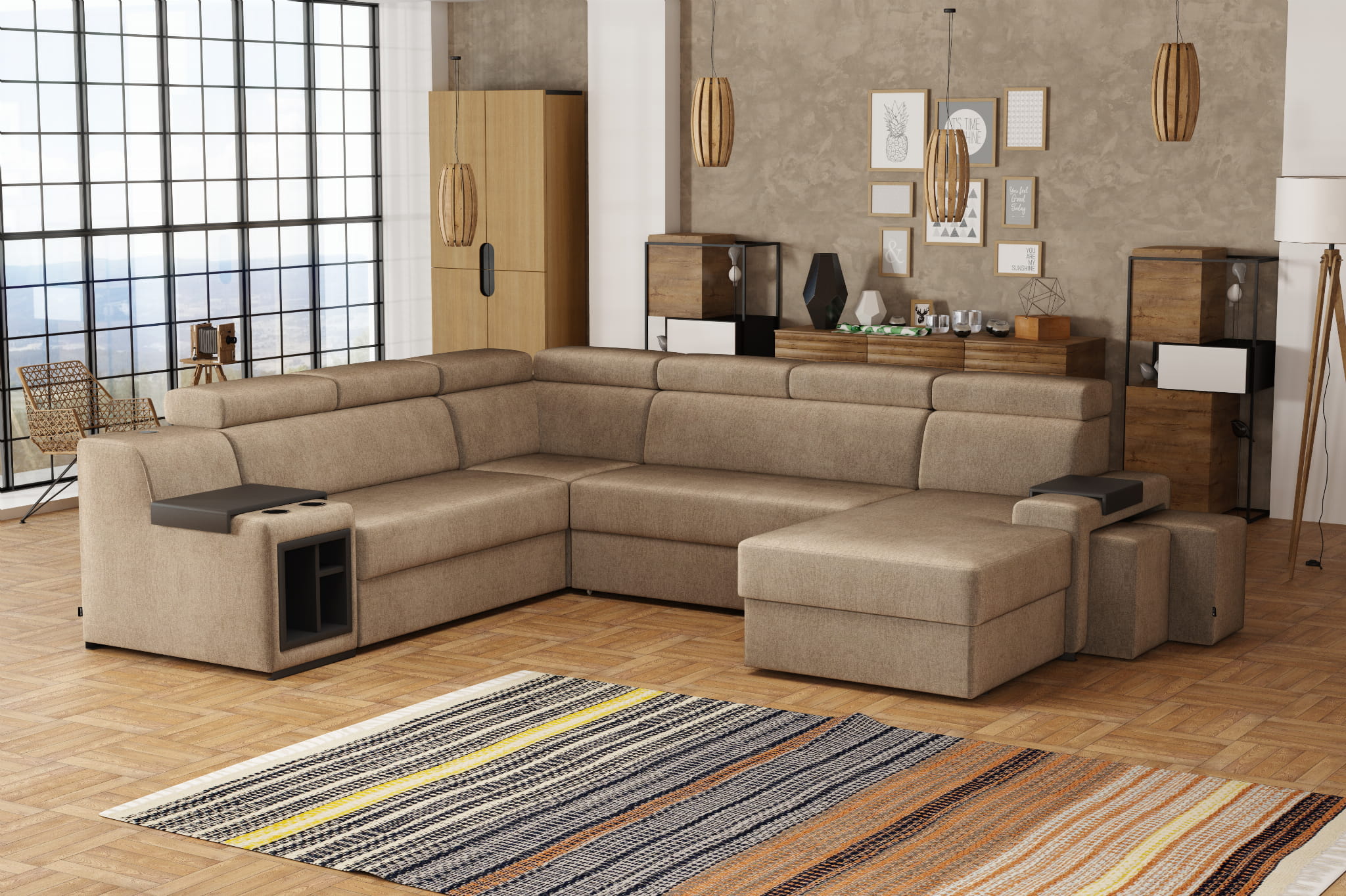 Duża powierzchnia użytkowa oraz praktyczne funkcje sprawiają, że model dobrze sprawdza się w codziennym użytkowaniu. To propozycja dla osób, które szukają wygodnego narożnika o nowoczesnym charakterze i funkcjonalnych rozwiązaniach dopasowanych do życia domowego.