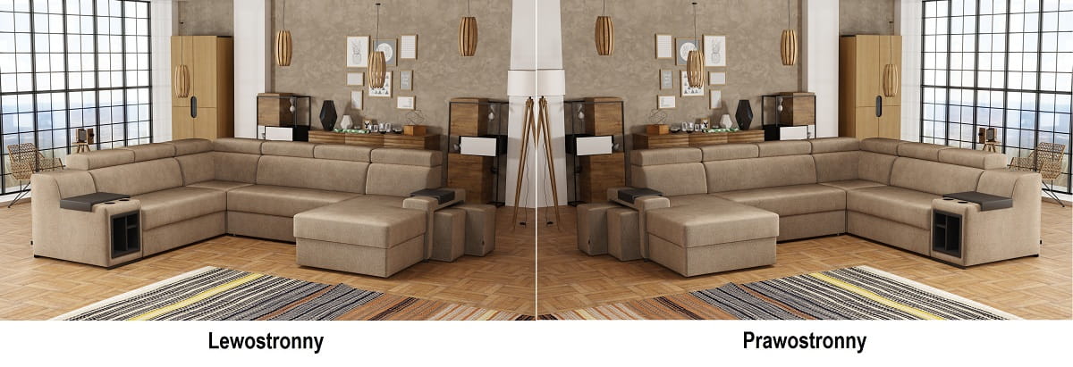 Stronę użytkowania określa bardziej wysunięty element narożnika, patrząc na mebel od frontu.