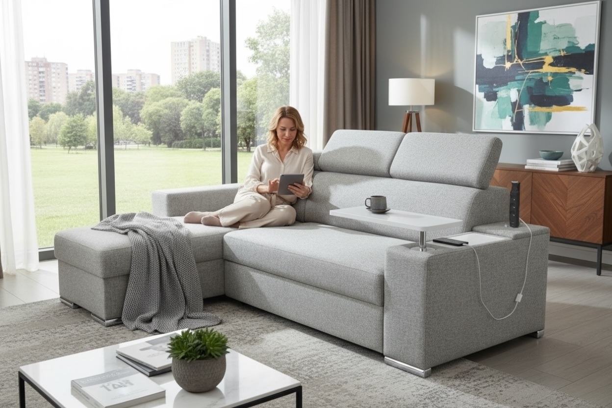To dobra opcja dla osób, które chcą stworzyć narożnik dopasowany nie tylko do przestrzeni, ale także do własnych przyzwyczajeń i sposobu korzystania z salonu.