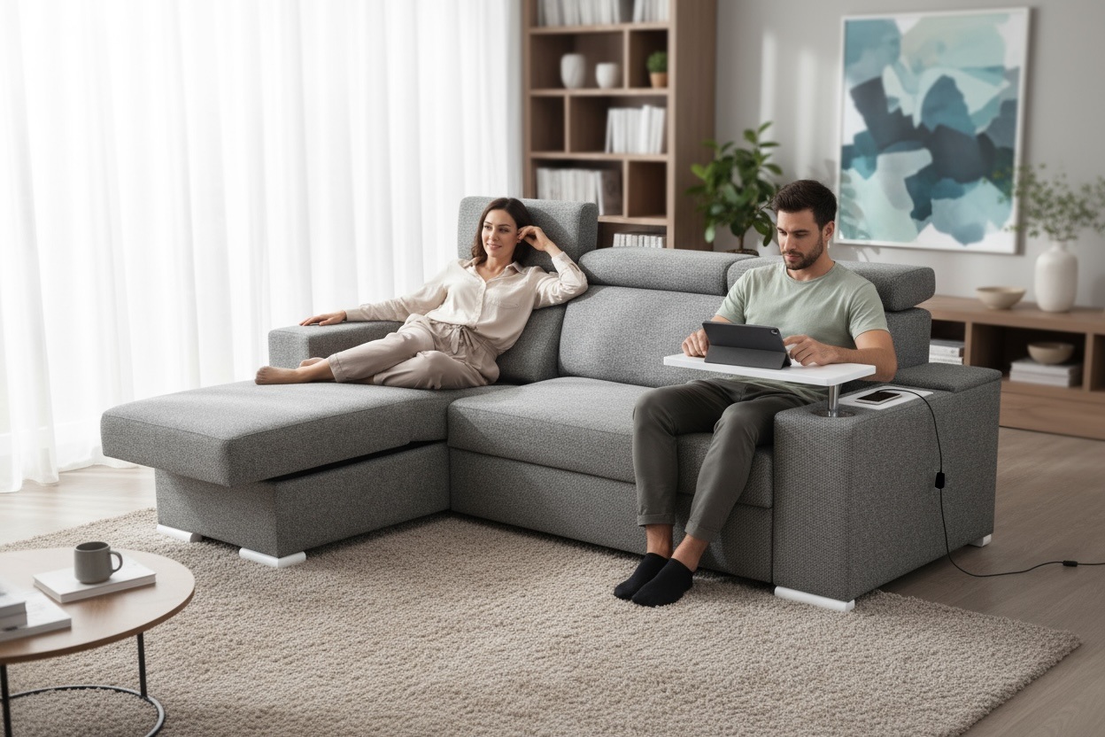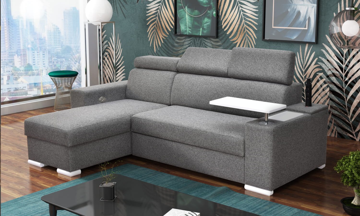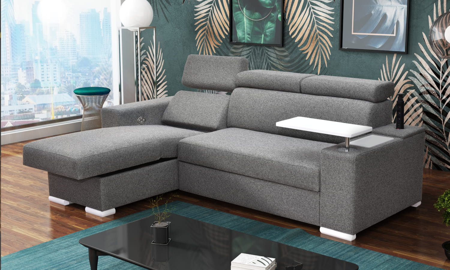 Narożnik OH Phoenix Z4 z funkcją spania, relaxem i blatem pod laptopa