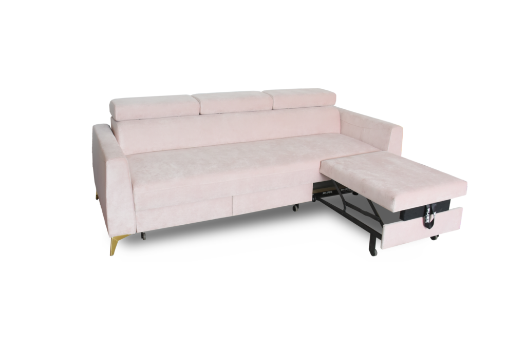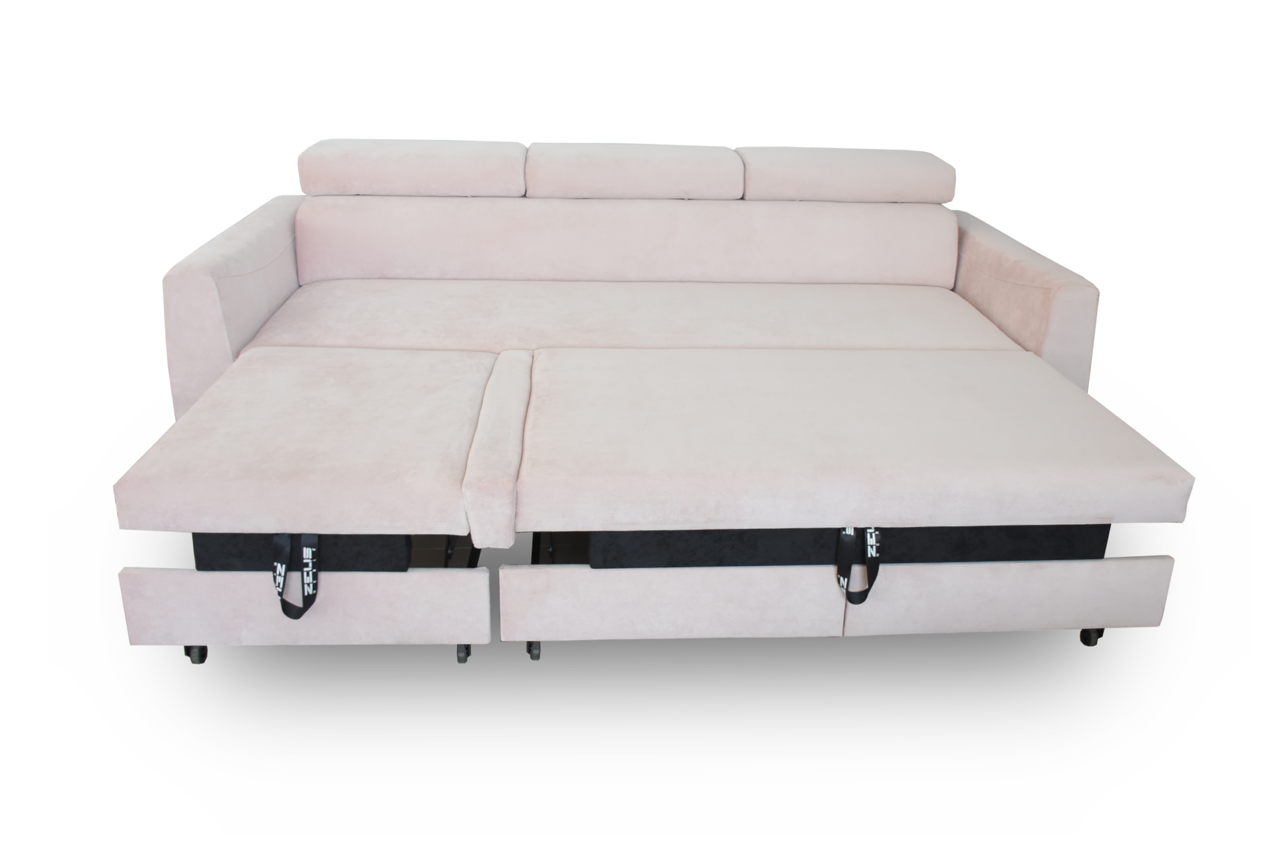 W standardzie narożnik wyposażony jest w regulowane zagłówki, a co najważniejsze narożnik posiada funkcję spania o sporych wymiarach. Dodatkowym plusem systemu OH Heron jest możliwość doposażenia swojego mebla w funkcjonalne dodatki typu, rozkładany blat pod laptopa, listwa z gniazdami 230v i USB, system audio, półki w bokach czy oparciach, ładowarki indukcyjne.